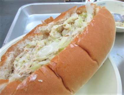 コッペパン,チャウダー,ツナサンドの具,マヨネーズ,牛乳 です。