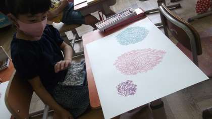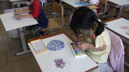クレヨンであじさいを描きました。細かく細かく丁寧に取り組むことができました。
