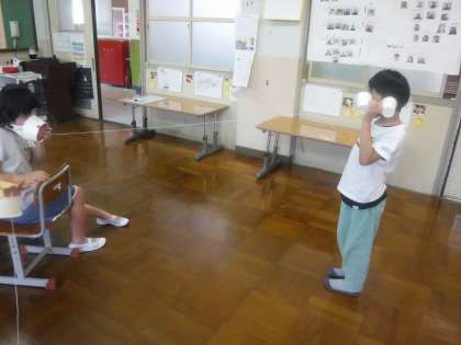 図画工作科の時間に,紙コップで糸電話遊びをしました。