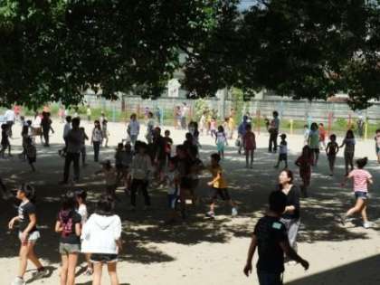 9月11日日曜参観の中間休みに、全校が3つのグループに分かれて「バナナおに」を楽しみました。