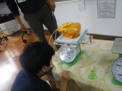 次はもっと重いものの重さを量ってみたいと,意欲を高めていました。