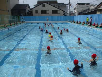 みんなで楽しくプールに入りました!