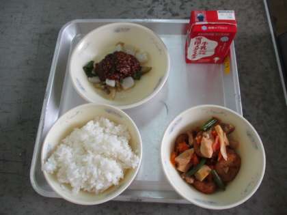 今日の献立は、ごはん,平天の煮つけ,京野菜のごまみそかけ,牛乳です。