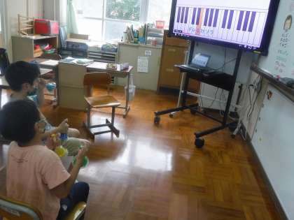大きな声を出して歌えない中でも,みんなで音を合わせるととっても楽しい時間になりました。