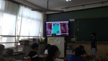 ロイロノートのカメラ機能を使って自分の作品を撮影し,それを画面に映しながら,作品の作り方や頑張ったところを発表しました。
