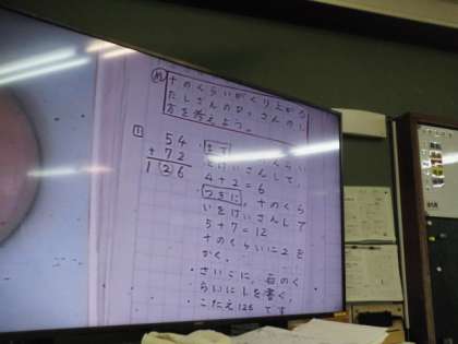 たし算の筆算(2)の学習をしています。