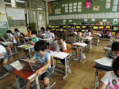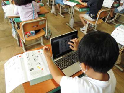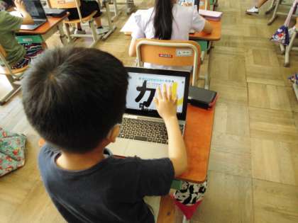 タブレットを使って何回も練習しました。お手本をなぞったり,余白の部分に自分で書いたり,とても頑張りました。