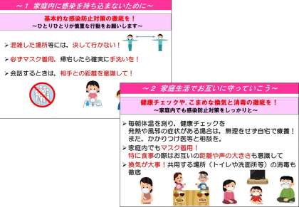 ご家庭におかれましても,今一度,感染対策等についてご確認いただきますよう,よろしくお願いいたします。