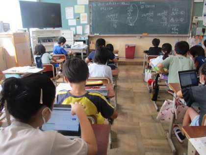 算数の授業の最後に,デジタルドリル等を活用して発展問題に挑戦しています。