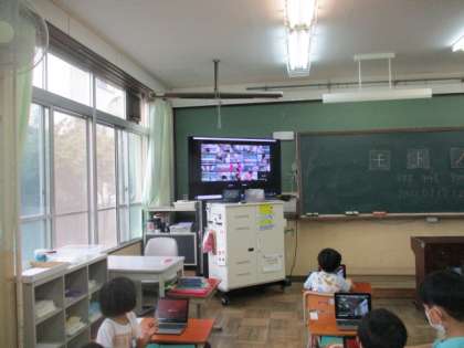 すぐそばにいるけど,画面越しにみんなで手を振り合っていました!