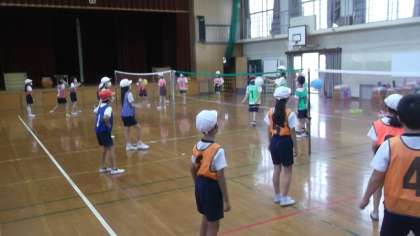 体育の学習でソフトバレーボールをしました。「声を出そう!」と言ったり,立ち位置の確認をしたり,チームで一生懸命考えながらプレーしていました。