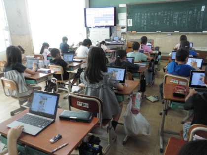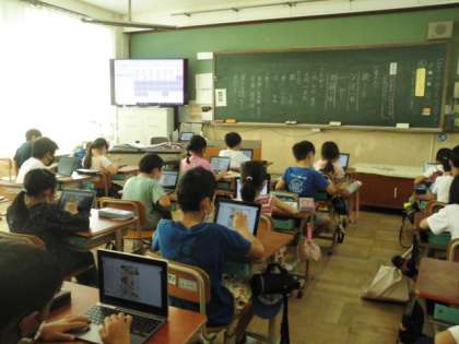 みんな,ロイロノートで,絵を見ながら文づくりに意欲的に取り組んでいました。できた文を発表したり,提出箱に提出された友だちの文を読んだりしました。たくさんの文づくりに取り組んだ子もいました。