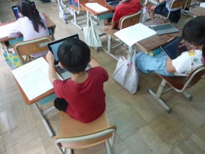 書いた文章を読んで発表するのではなく,書いた文章を見ることができるので,相手が読めるように書くことも大事になってくることに,子どもたちは気付いている様子でした。