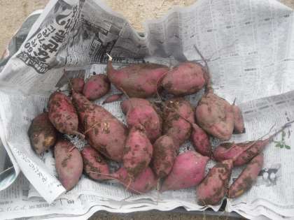 涼しい中でも汗だくになりながら,みんな頑張って掘りました。