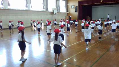 動作の確認の後,曲に合わせてダンスをしました。学年で初めて合わせたので,まだそろっていませんが,これから練習してそろえていければいいなと思います。