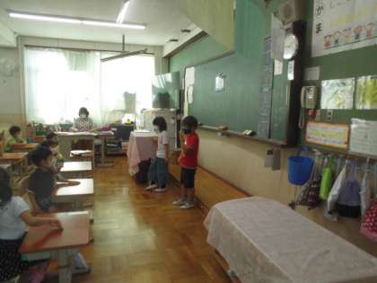 一週間の始め。元気にあいさつをした後に朝会で校長先生のお話を聞きました。みんなでルールを守ることを再確認しました。