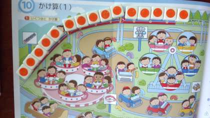 かけ算のはじめの学習で,乗り物に子どもが何人乗っているかを学習しました。