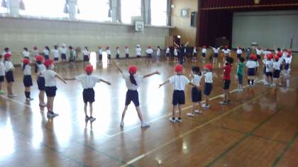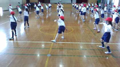 最後に,はじめから通して練習をしました。次回からは運動場でも練習をしていきます。運動場でものびのびと演技を披露してほしいと思います。