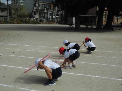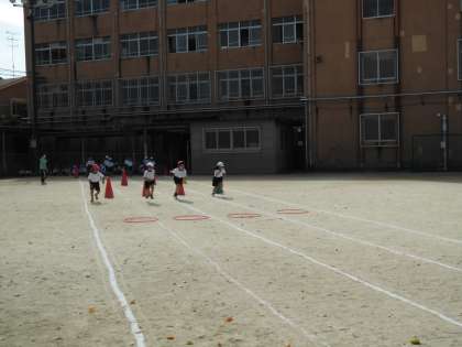 今日は障害物競走「まわって,くぐって,ぴょんぴょん!」の練習でした。とても頑張って走っていました。
