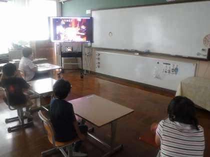 動画を見ながら,「ゴシ谷ハイクは大変やった。」「カレーは美味しくできたよ。」など,話が弾みました。