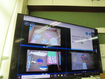 魚つりゲーム・くじびき・ボーリングなど,各グループで作ったものを紹介しあいました。仕上がった作品は,ロイロノートで写真を撮り,提出箱に提出し,みんなで共有しました。発表を聞いた後,思ったことやいいところを見つけて,カードに書く活動もしました。