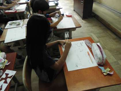 など,初めて使うコンパスを一生懸命使いながら円をかいていました。