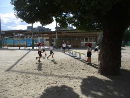 今日は,運動場で障害物競走の練習も行いました。