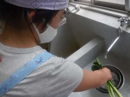 班の中で一人ひとり仕事を分担して,野菜を洗ったり切ったりしました。