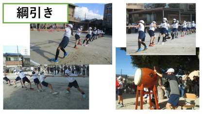 今日はスポーツ大会にふさわしい秋晴れの中,高学年の部が行われました。「100m走」「リレー」「綱引き」どの競技も子ども達の熱い思いが伝わるほど白熱した試合でした。