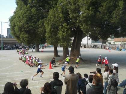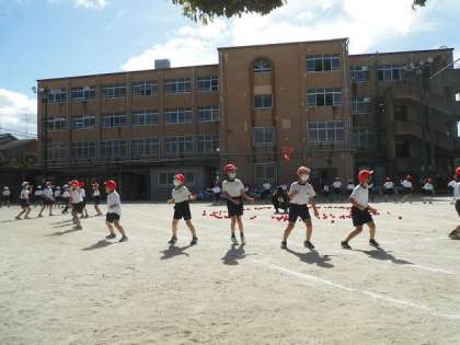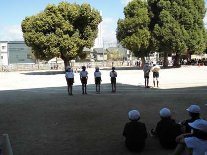 いよいよ本番!3年生は4人で立派に初めの言葉を言うことができました。その他の競技も,一生懸命励まし合って頑張る姿が見られました。