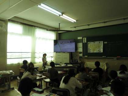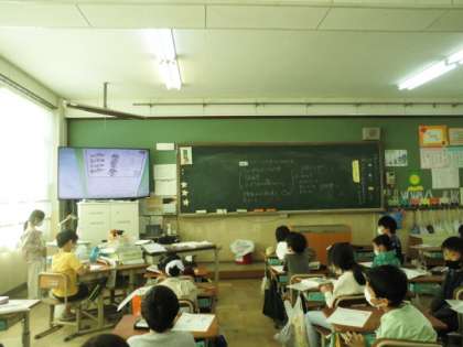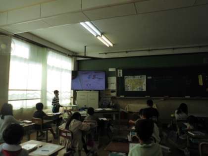 次に,カードを書画カメラでTV画面に映して,自分の見つけたものを発表しあいました。