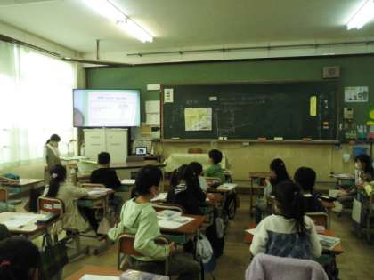 最後に,たんけんカードを書画カメラでTV画面に映して発表しあいました。