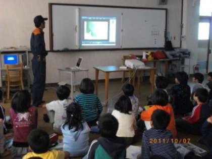 消防士さんと地域の消防団の方から,「火事から生活を守る」お仕事についてお話をうかがいました。