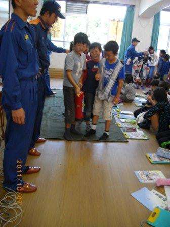 そのあと子ども達は,洋服に火がついたときの消し方や消化器の使い方など,貴重な体験もさせてもらいました。