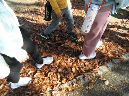 朝方に雨が降っていましたが,子ども達は,楽しく秋見つけをしていました。