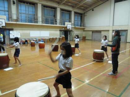 右と左のばちさばきを教えていただきました。口でリズムをかなでながら練習に取り組みました。