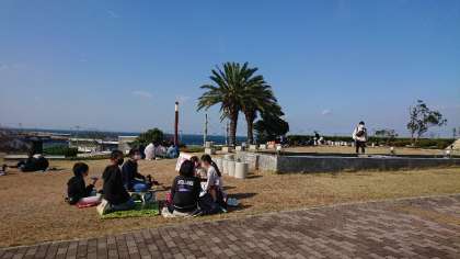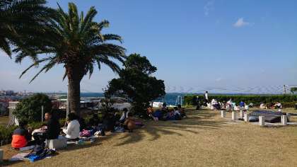 朝も早かったのでお腹がペコペコです。北淡震災記念公園の広場でお弁当です!