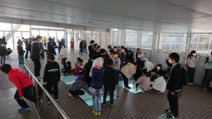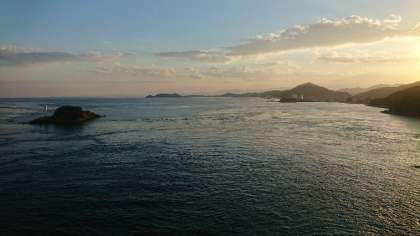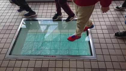 大鳴門橋の遊歩道の「渦の道」。真下には海流の様子が見えます。渦潮は見にくかったのですが,その迫力に歓声があがります。