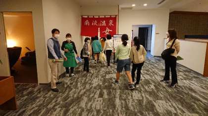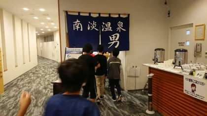 宿舎について,早速入浴です。密を避けるために順番に入りますが,早く入りたくて待ちきれないようです!