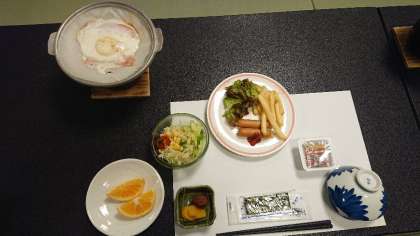 寝具整理をしている間,宿舎の皆さんが,朝食の準備をしてくださっています。