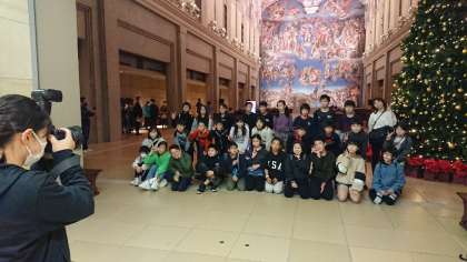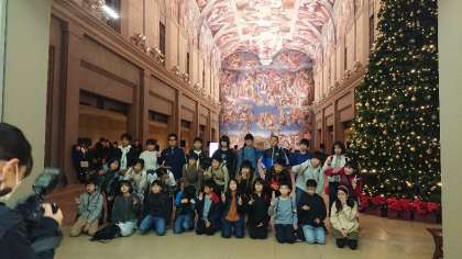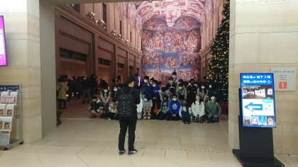 ピカソ作「ゲルニカ」前でクラス写真を撮りました。