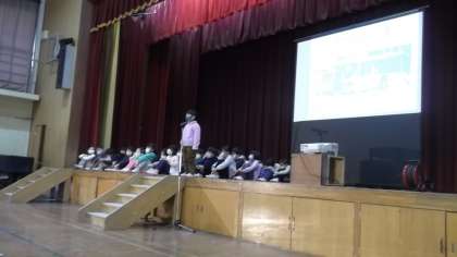 初めてのくすのきタイム。体育館でたくさんのお家の人の前というのもあり,