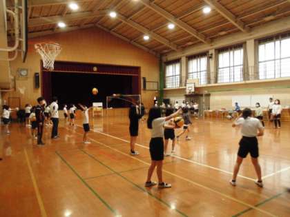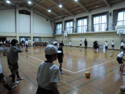 体育館では「トス」や「スパイク」「サーブ」など,それぞれが目標に向かって練習に取り組みました。うまくなりたいと,みんなが意欲をもって頑張っていました。