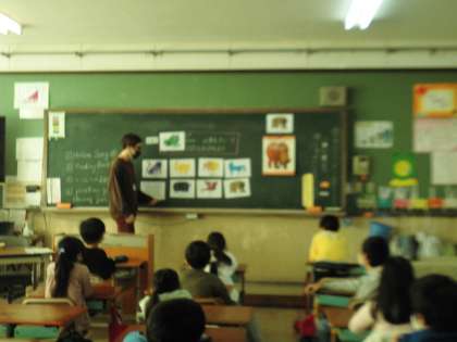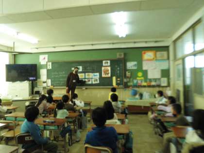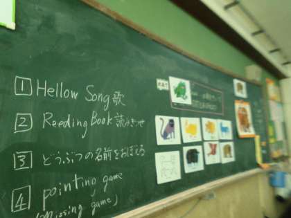 絵本の読み聞かせの後,お話に出てくる動物の名前や色の練習しました。何回もALTの先生の発音を聞きながら,みんな意欲的に学習に取り組んでいました。