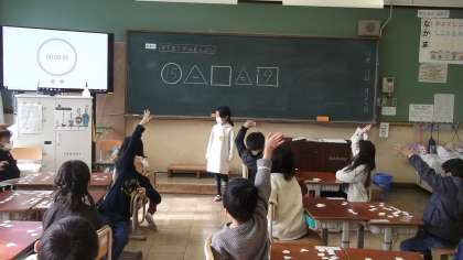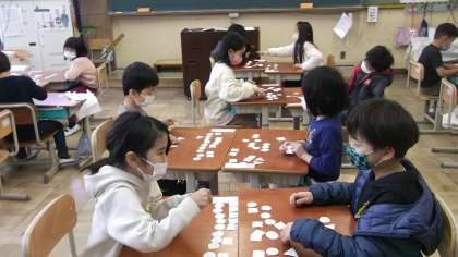 たし算やひき算の式をつくり,そのうち1枚の数字のカードを裏返して,その数を当てるゲームをしました。