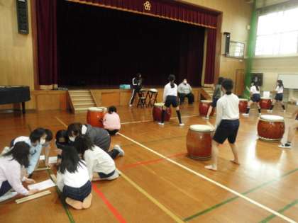 リズムを口できざみながら,身体全身で表現をしていました。音色から体育館全体に躍動感が感じられました。