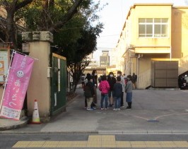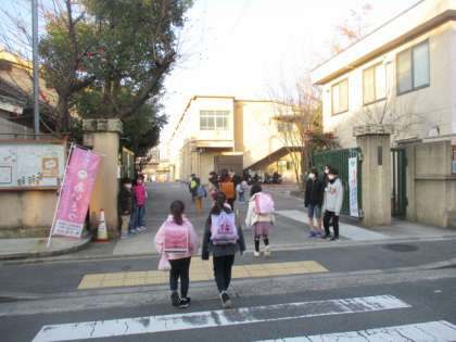 あいさつ運動3日目。代表委員会の子どもたちが,朝早くからあいさつを呼び掛けています。