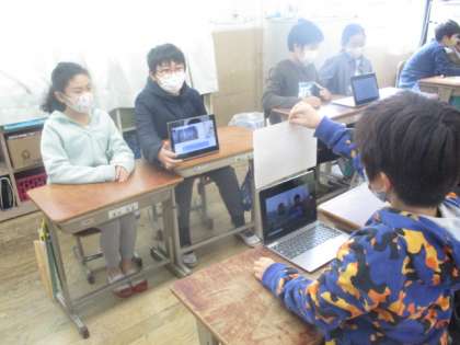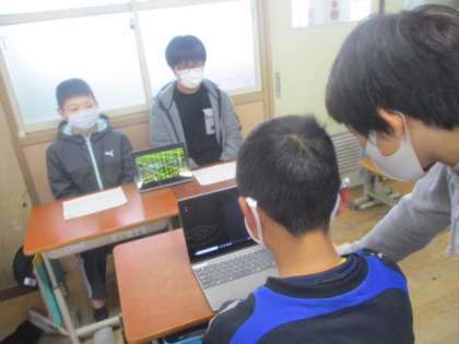 社会科のニュース作りでは,グループで作成した原稿と映像を使って,ニュース番組の撮影練習をしました。