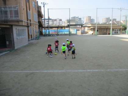 体育の学習で,「タグラグビー」に取り組んでいます。