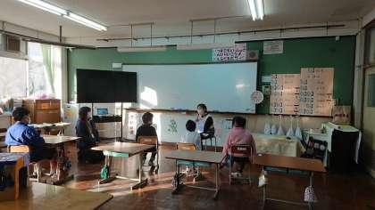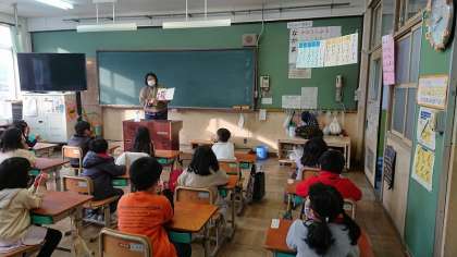 今日は水曜日。読み聞かせボランティアの方々による1年生,しいのみ学級の本の読み聞かせの日です。